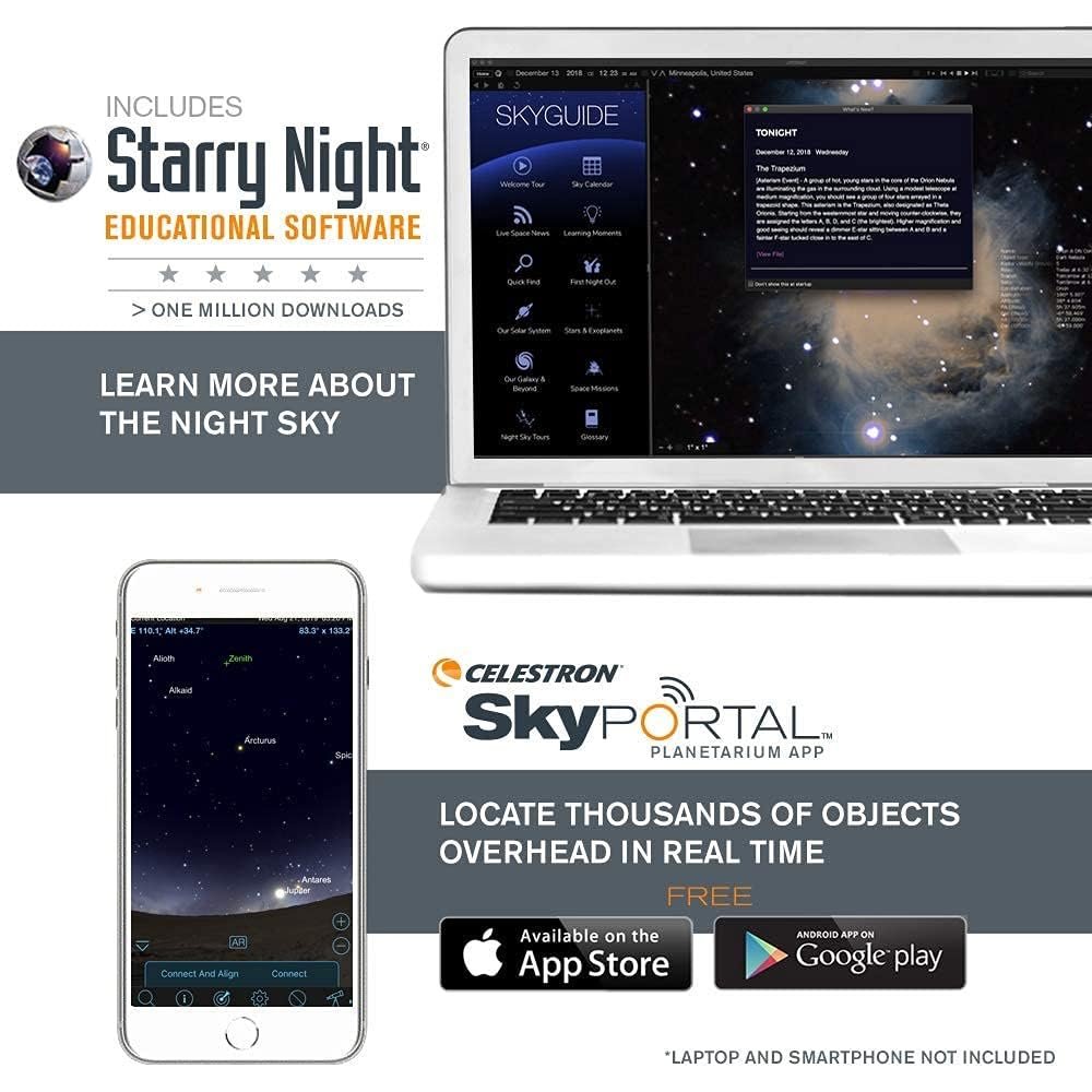 - BONUS BACKPACK AND SOFTWARE: Includes a padded backpack with room for accessories, a finderscope, star diagonal, eyepieces, and a free download of Starry Night software to help you identify celestial objects and plan your next stargazing session.