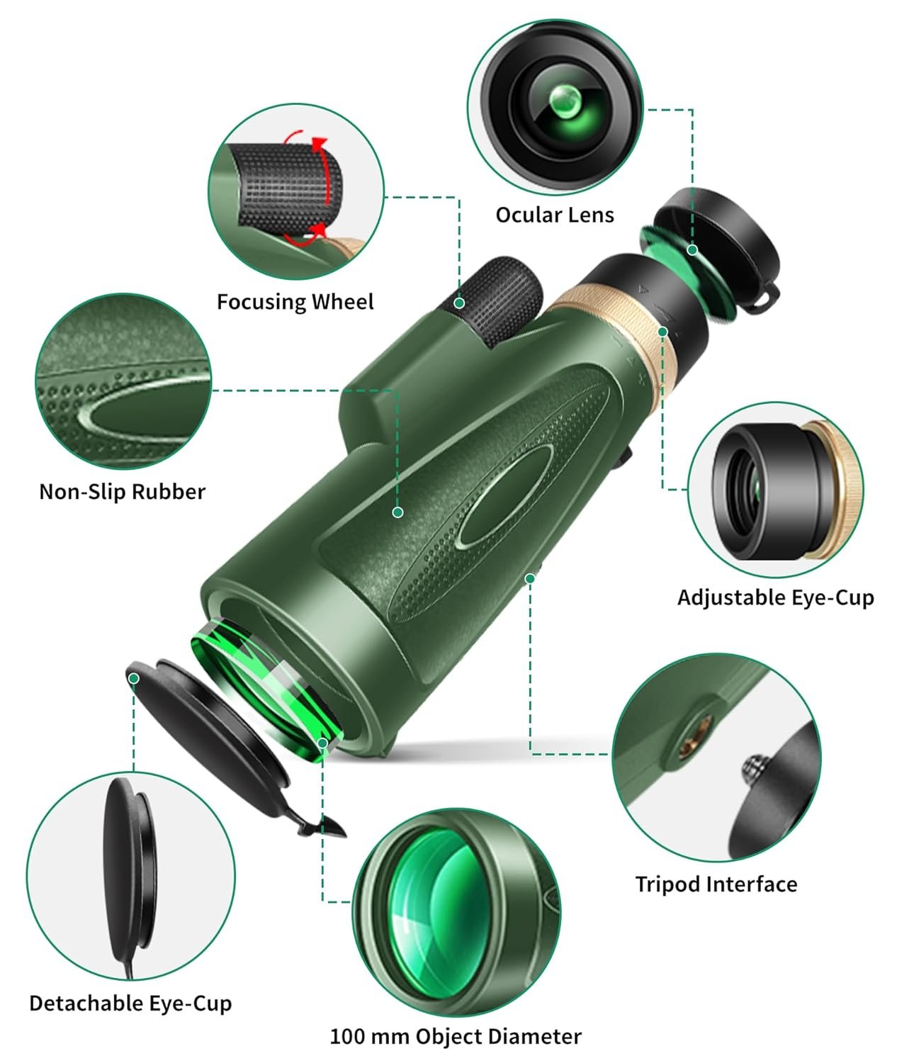 - 80100 High Definition Monocular Telescope: 80 times magnification and 100mm object lens diameter monocular that provides a wide-angle view. Designed for outdoor enthusiasts, comfortable for hiking, hunting, bird watching,wildlife watching and scenery