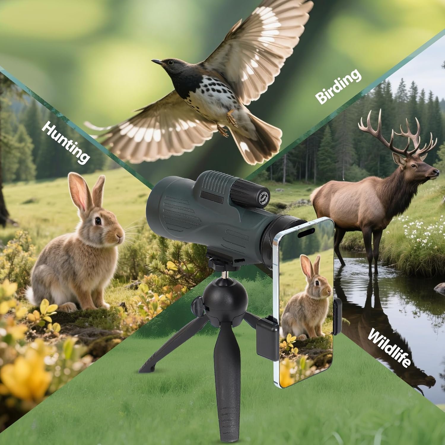 - Stable Observation: Equipped with a tripod and a mobile phone adapter. Using a tripod can help long-term observation more stable, and the universal mobile phone holder can connect to a smartphone to easily take long-range photos/videos, suitable for travel, concerts and sports event recording.